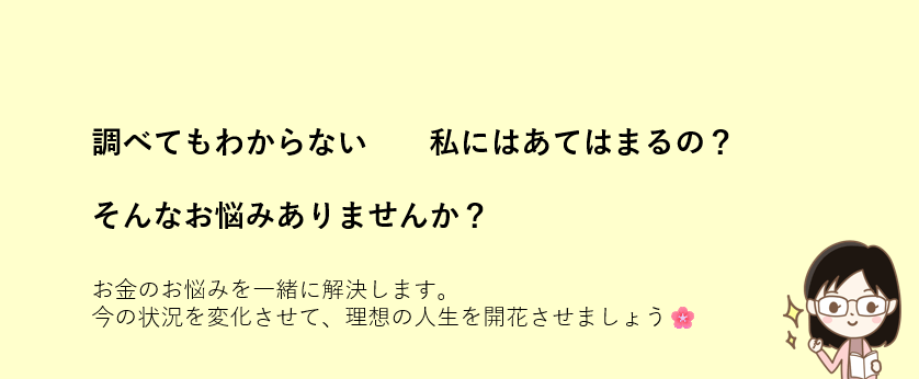 同じ立場でお金の悩みを持つ方に寄り添い、お悩み解消のアドバイスをさせていただきます。